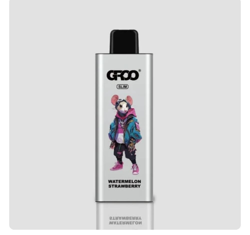GROO Slim 9000 Puffs Watermelon Strawberry delivers a juicy blend of ripe watermelon and sweet strawberries in a long-lasting disposable e‑cig for adult users.
